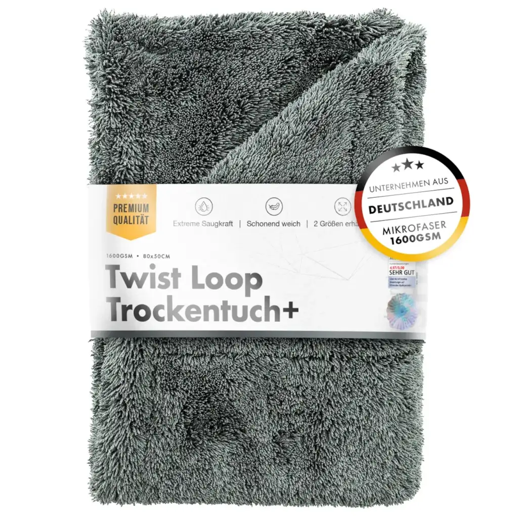 Découvrez le summum du séchage automobile avec notre microfibre haut de gamme à boucles torsadées. Avec sa densité exceptionnelle de 1 600 g/m² et sa structure en microfibre à boucles torsadées, ce chiffon offre non seulement une absorption optimale, mais glisse également en douceur sur la peinture pour une finition impeccable.