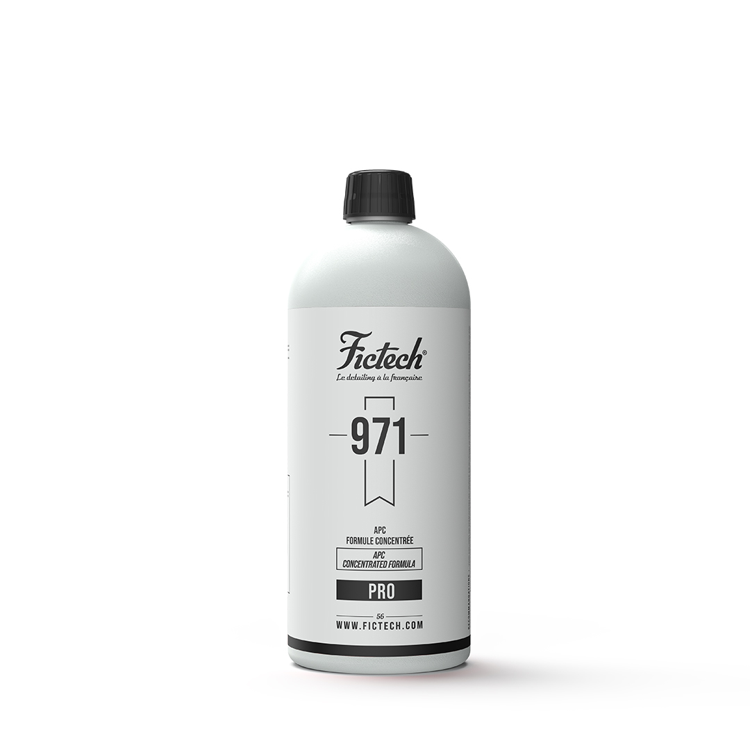 971 est un nettoyant-dégraissant APC (All Purpose Cleaner) qui combine efficacité, polyvalence et économie. Grâce à sa formule concentrée, il assure un nettoyage complet tout en neutralisant les mauvaises odeurs. Ainsi, il s’impose comme le choix idéal pour les professionnels du detailing. D’abord, 971 nettoie, dégraisse et désincruste en profondeur. Ensuite, il s’adapte parfaitement à divers supports tels que :